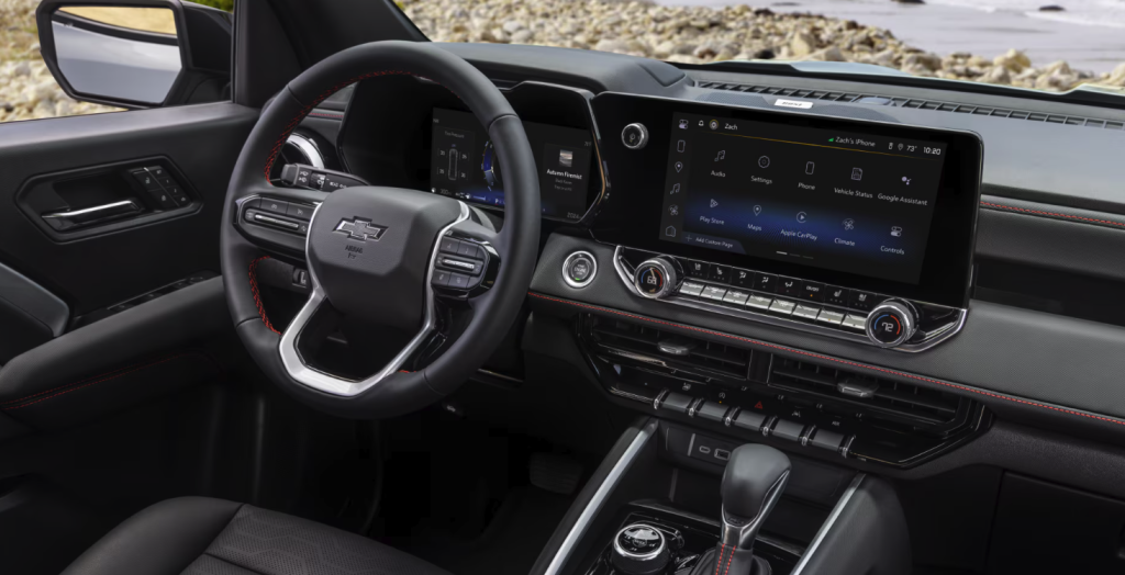 Technology adds even more utility. Chevrolet includes an 11.3-inch center touchscreen, best-in-class standard 11-inch Driver Information Center, standard Google built-in, and available trailering app. Available underbody cameras and up to 10 camera views make Colorado more than a traditional mechanical truck. They give the driver more information in tight spaces, on difficult terrain, and while managing trailer alignment or bed visibility. That matters a lot for newer truck buyers who want confidence-building tools along with old-school capability. It also matters for buyers moving up from SUVs who may want a midsize truck but still want the reassurance of a strong digital camera environment.